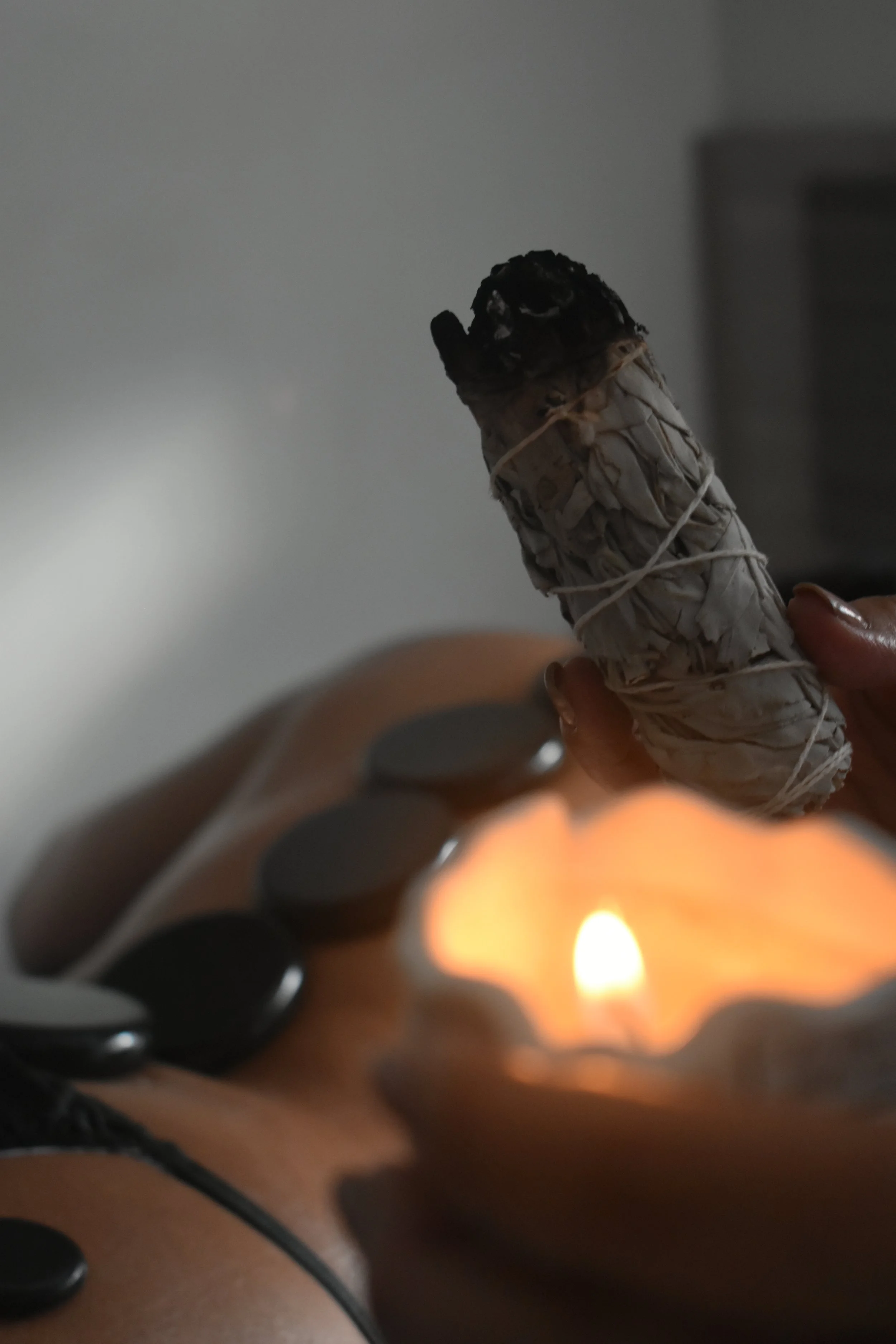 Incorporamos la relajación con piedras volcánicas para liberar tensiones musculares y técnicas de liberación energética con palo santo y salvia, ayudándote a equilibrar tu energía y reconectar con tu bienestar interior. Este masaje es ideal para aliviar el estrés emocional o laboral, mejorar el funcionamiento del sistema nervioso, controlar la ansiedad, regular el sueño y brindar una mejor calidad de vida a tu cuerpo en los niveles físico, mental y espiritual