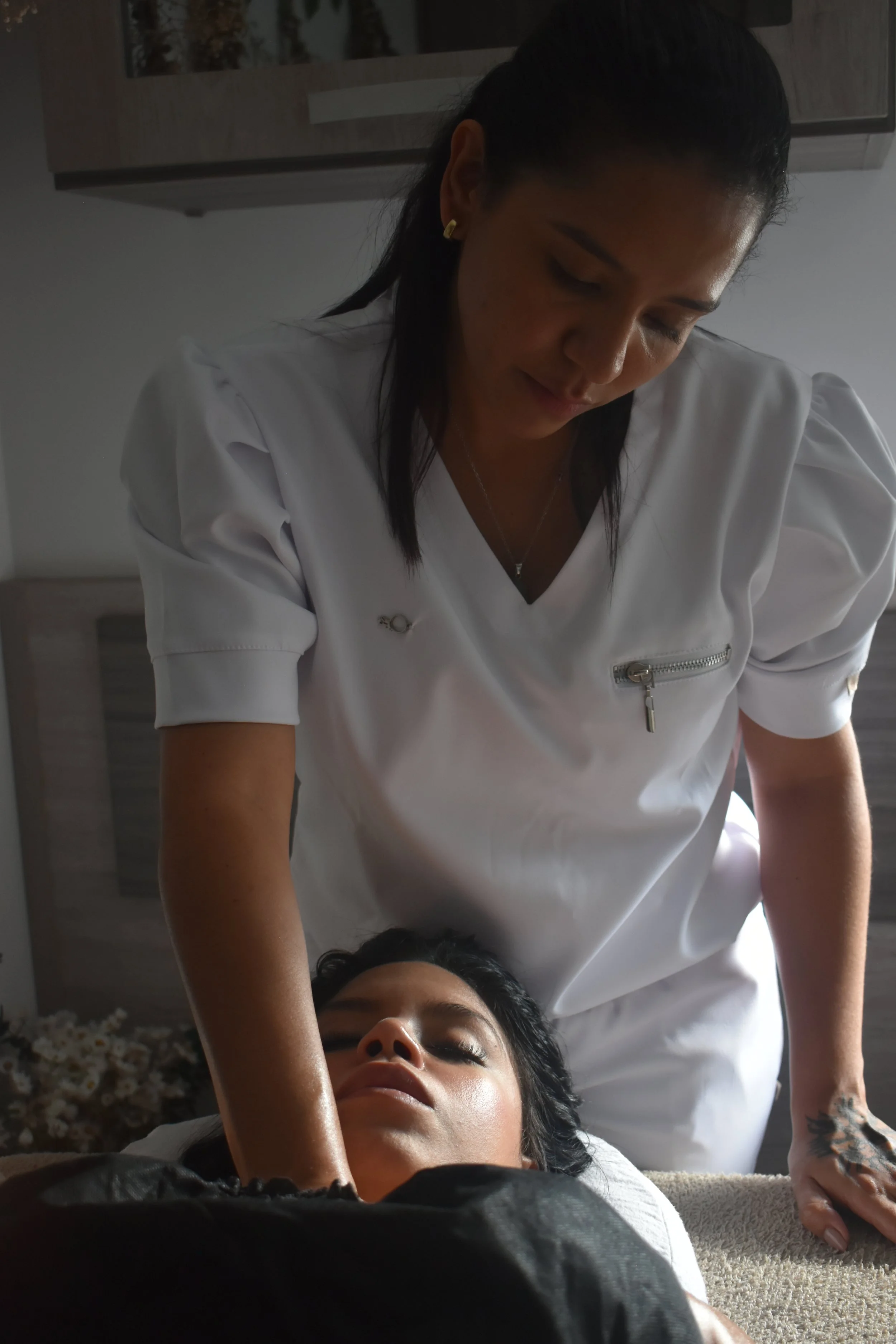 La experiencia se complementa con la aplicación de compresas calientes herbales que calman y relajan la zona tratada, y un masaje energético con cuarzos que equilibra y revitaliza la energía, promoviendo una conexión holística. Todo esto acompañado de aromaterapia relajante y afirmaciones de gratitud, creando un espacio de calma y agradecimiento hacia tu cuerpo.
